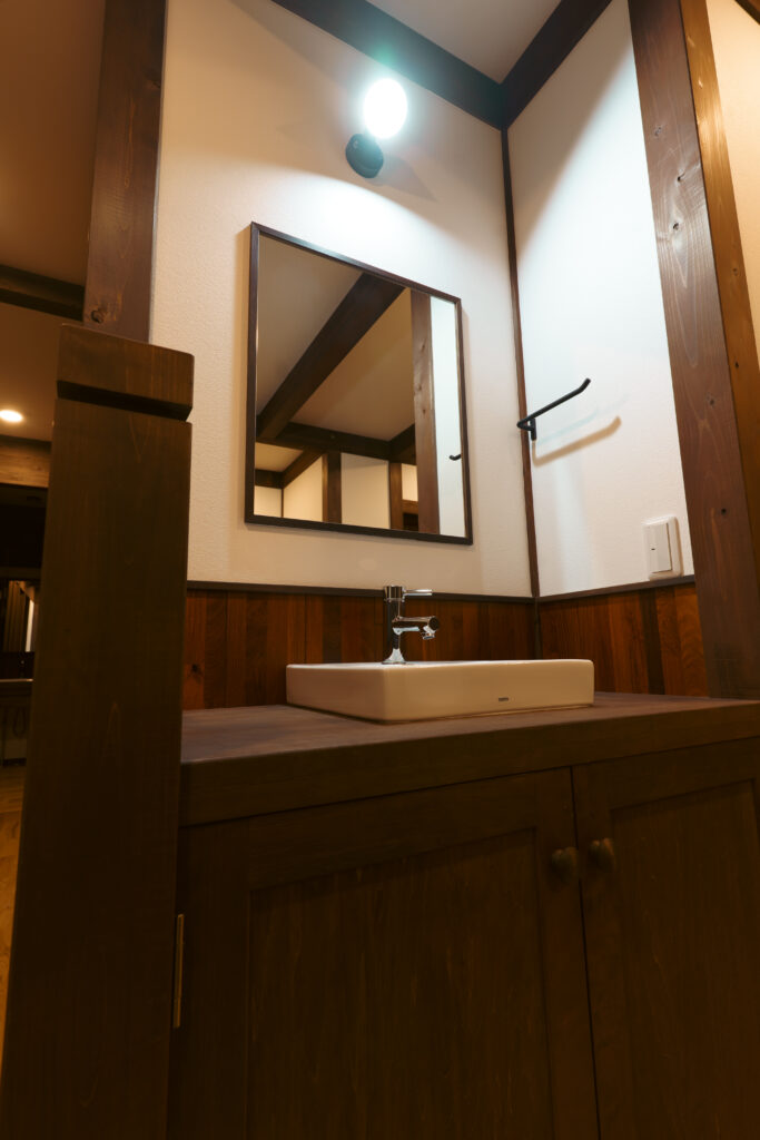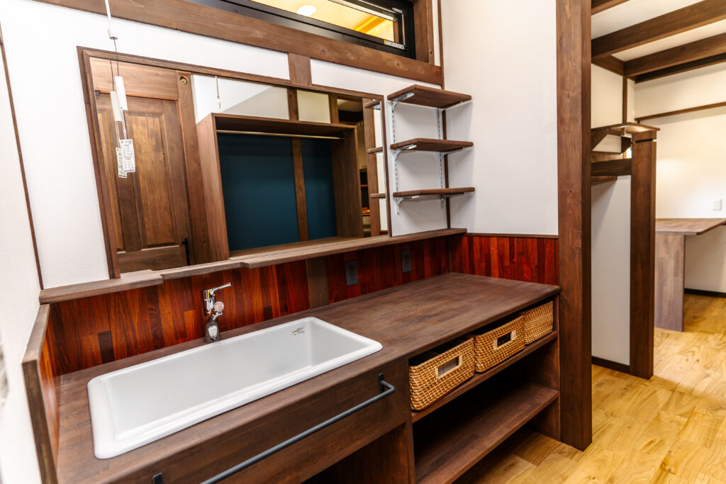 玄関とトイレをつなぐ動線上に配置されたミニ洗面台。