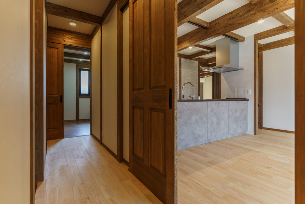 廊下からLDK、ランドリースペース、トイレへとアクセスできます